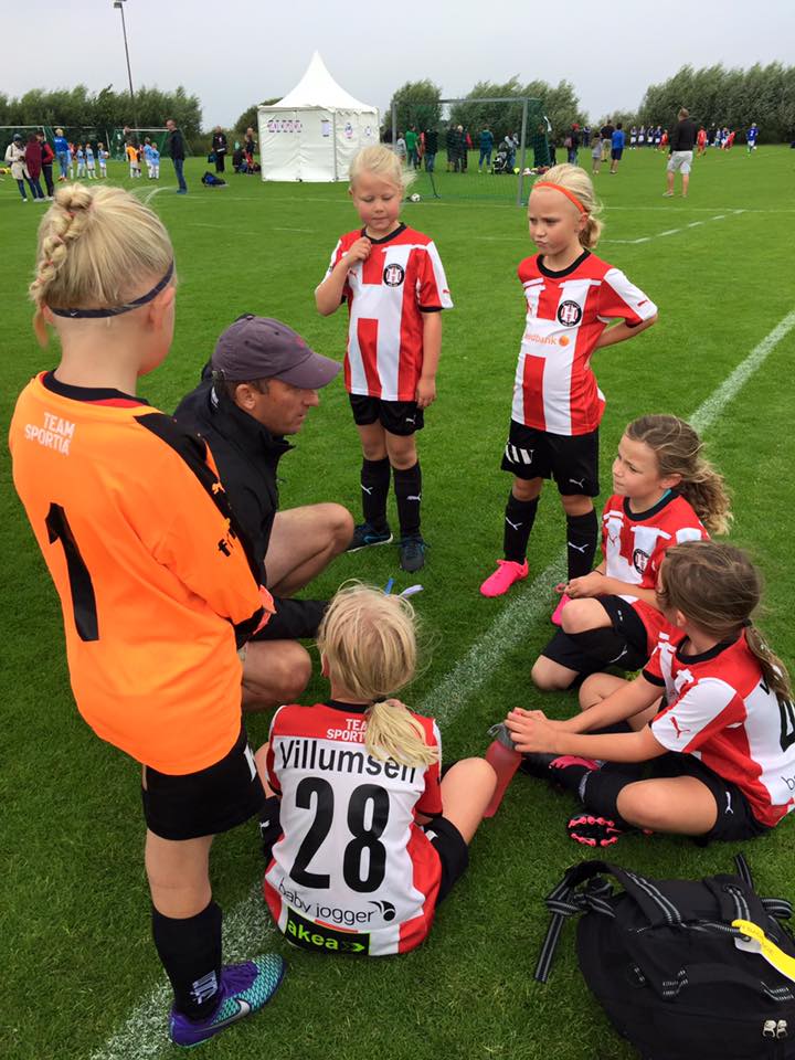 I helgen spelar vi Möllevallscupen. På lördagen var det 08:ornas tur som fick möta Dösjöbro, Köpingebro, Skanör Falsterbo och så varandra då vi hade två lag med. Här är det Jakob som ger instruktioner till koncentrerade tjejer i lag Röd. Foto Möllevallscupen.